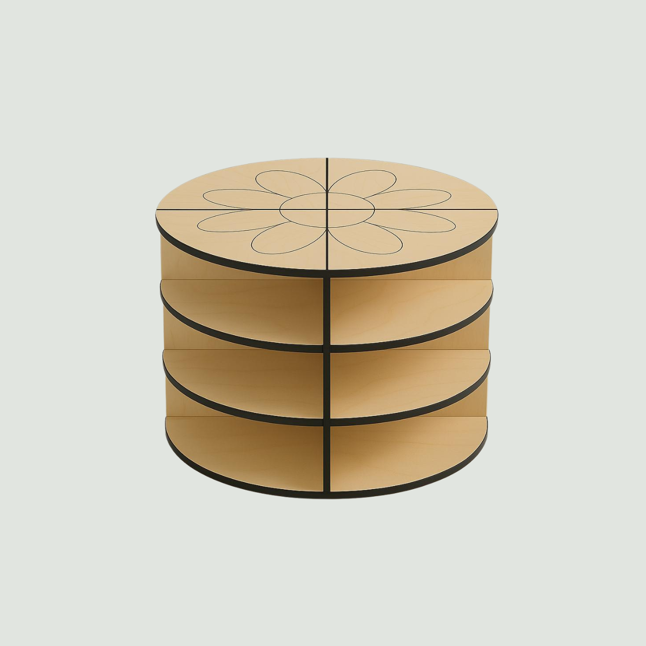 Sa grande capacité de rangement en partie haute permet de ranger jouets, matériel pédagogique, et désencombre les meubles bas, pour un roulement des jouets. Elle possède un présentoir à livres .