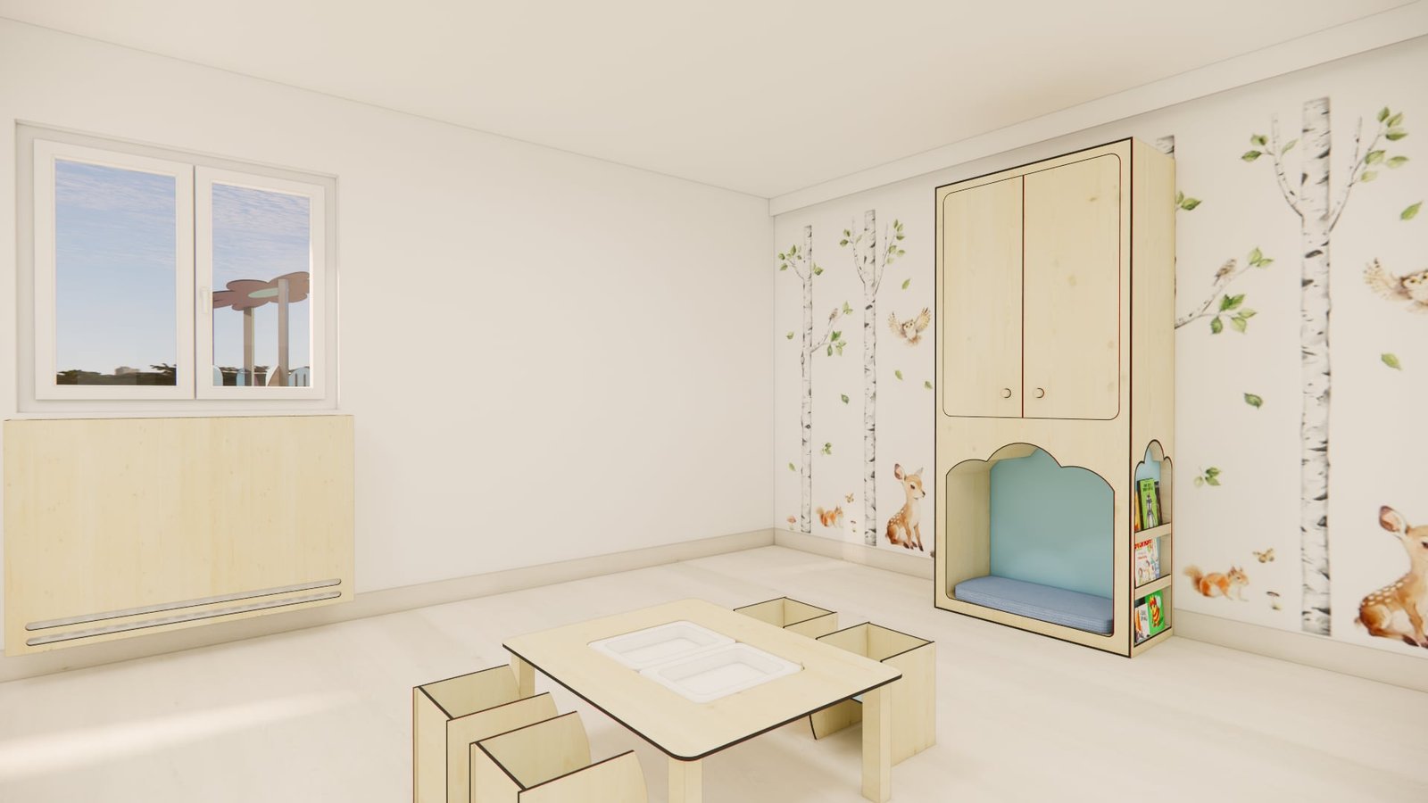 L’armoire cachette nuage, c’est plus qu’une simple armoire. Grâce à ses nombreuses fonctions, elle trouve sa place dans toutes les pièces de vie des structures petite enfance.