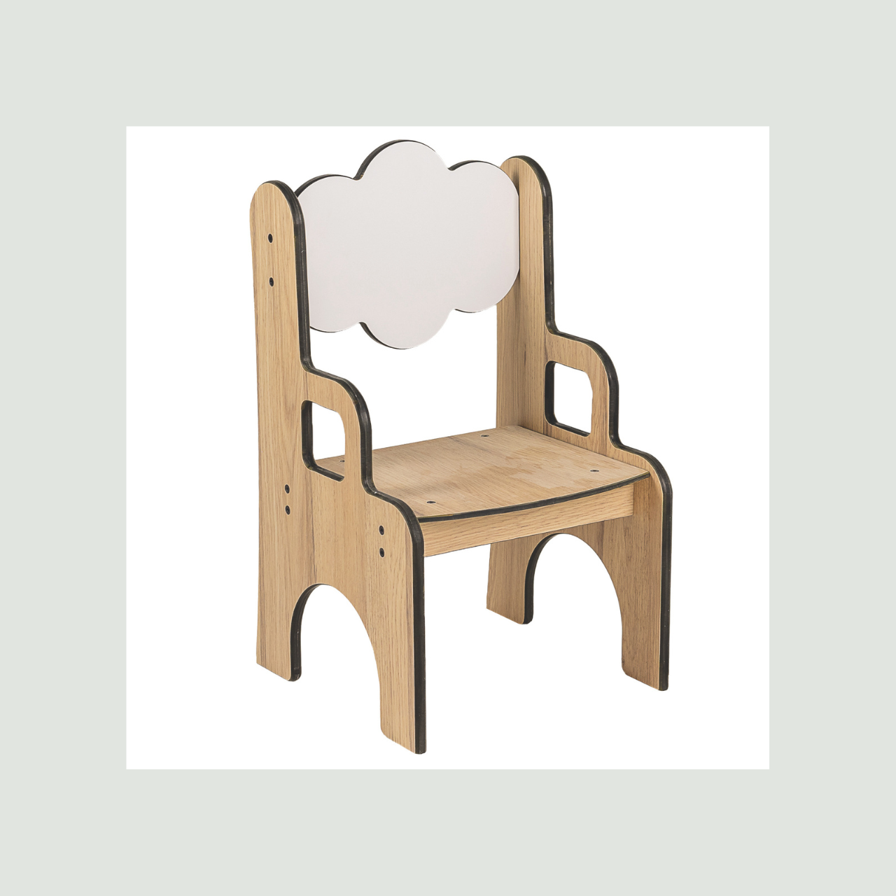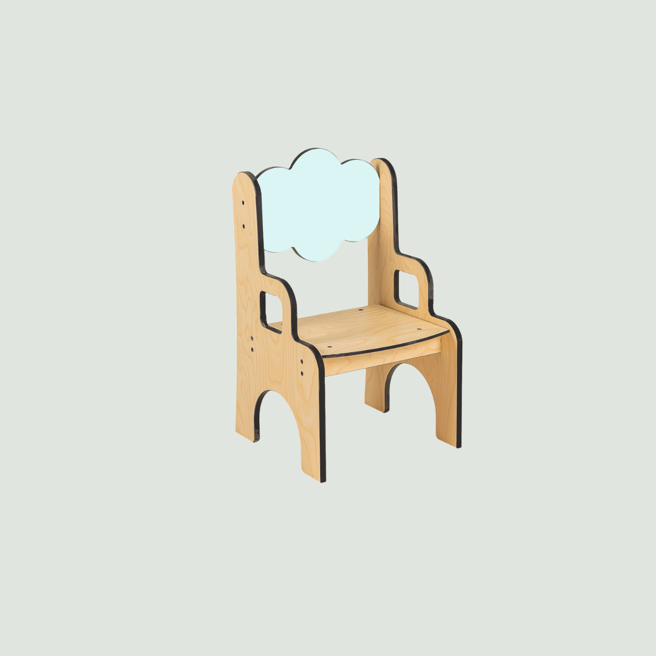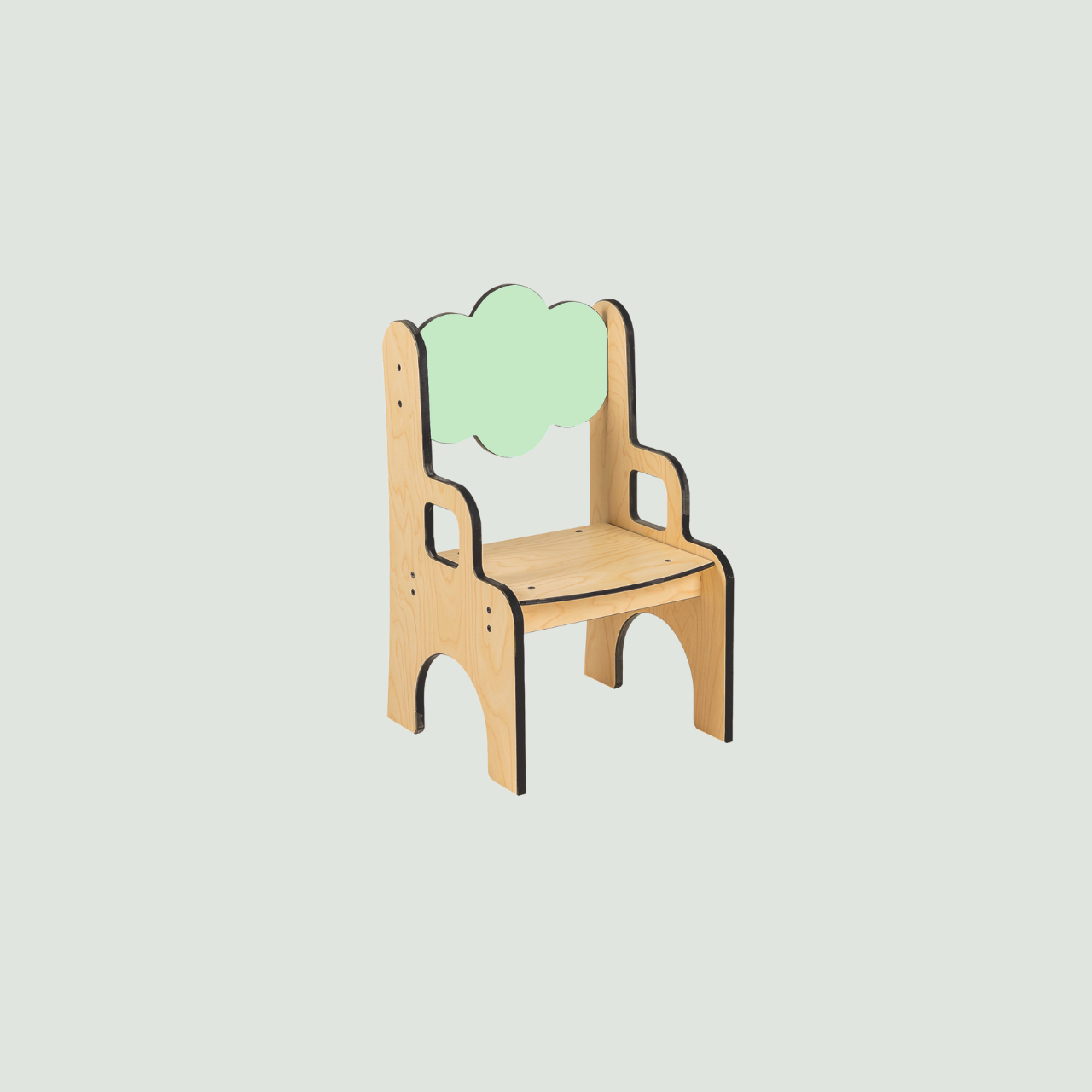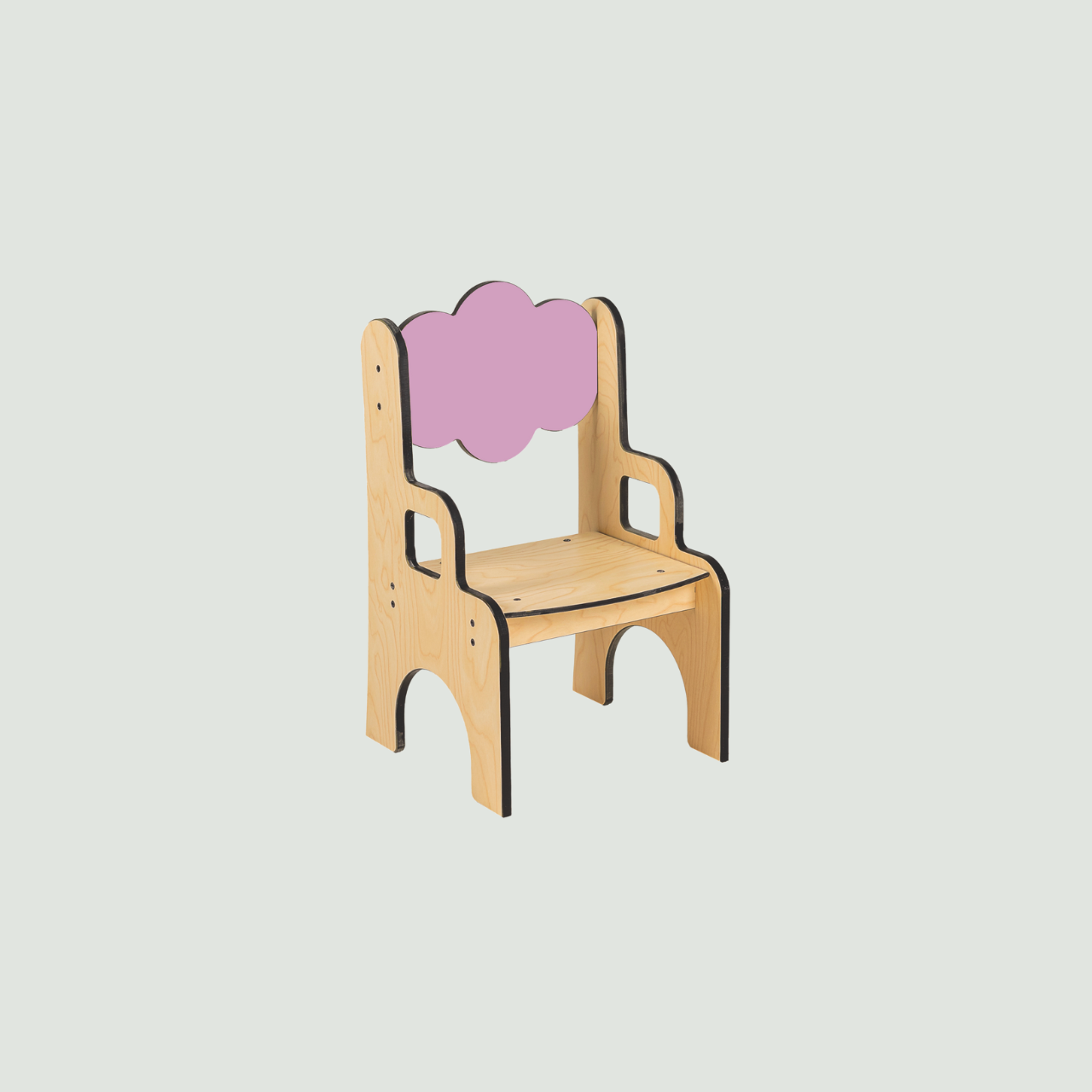 Chaise avec accoudoirs enfant en compact au design doux et ludique , avec un dossier en forme de nuage .
