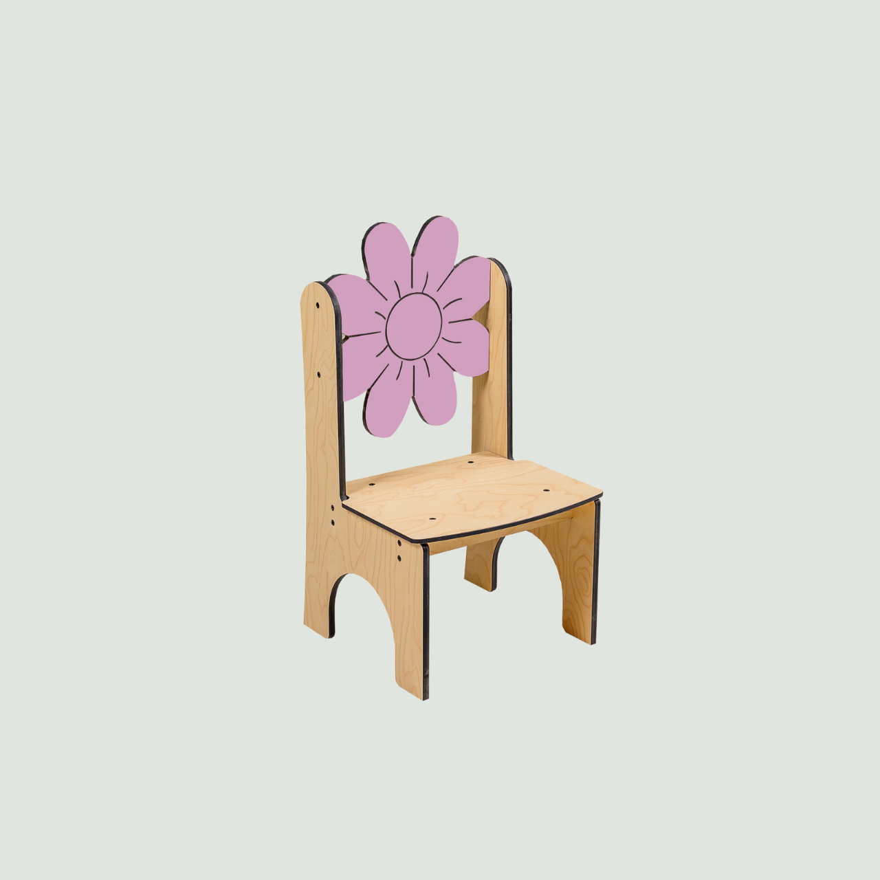 Chaise enfant en compact au design doux et ludique , avec un dossier en forme de fleur.