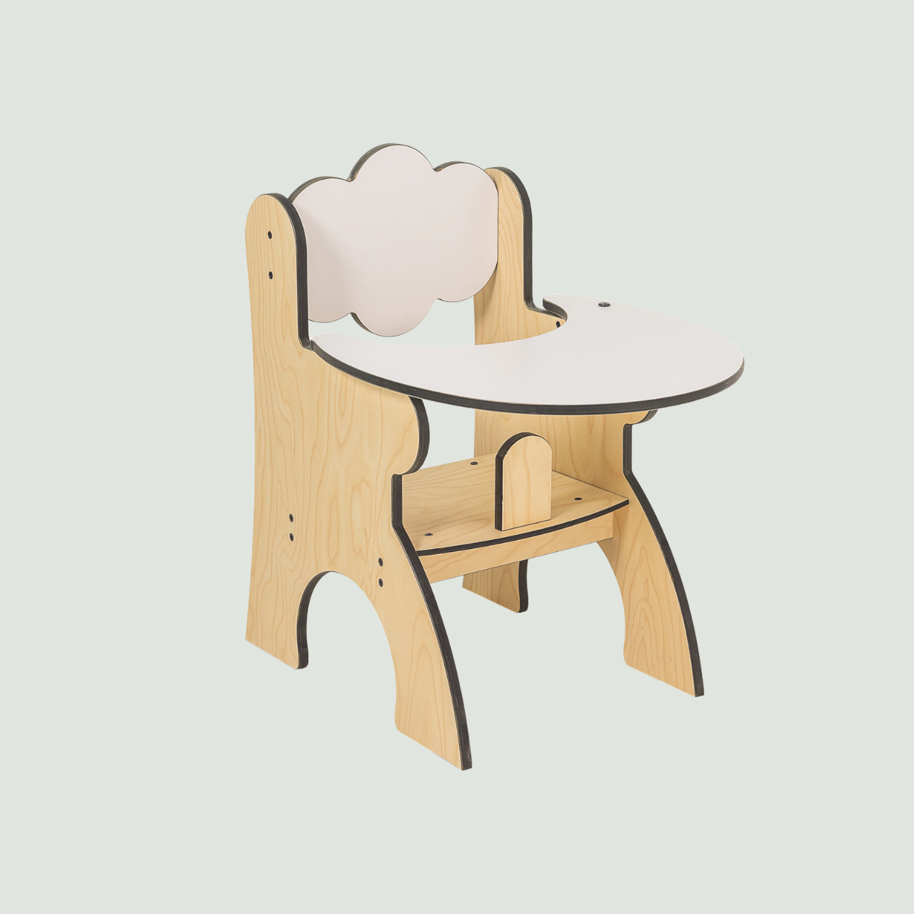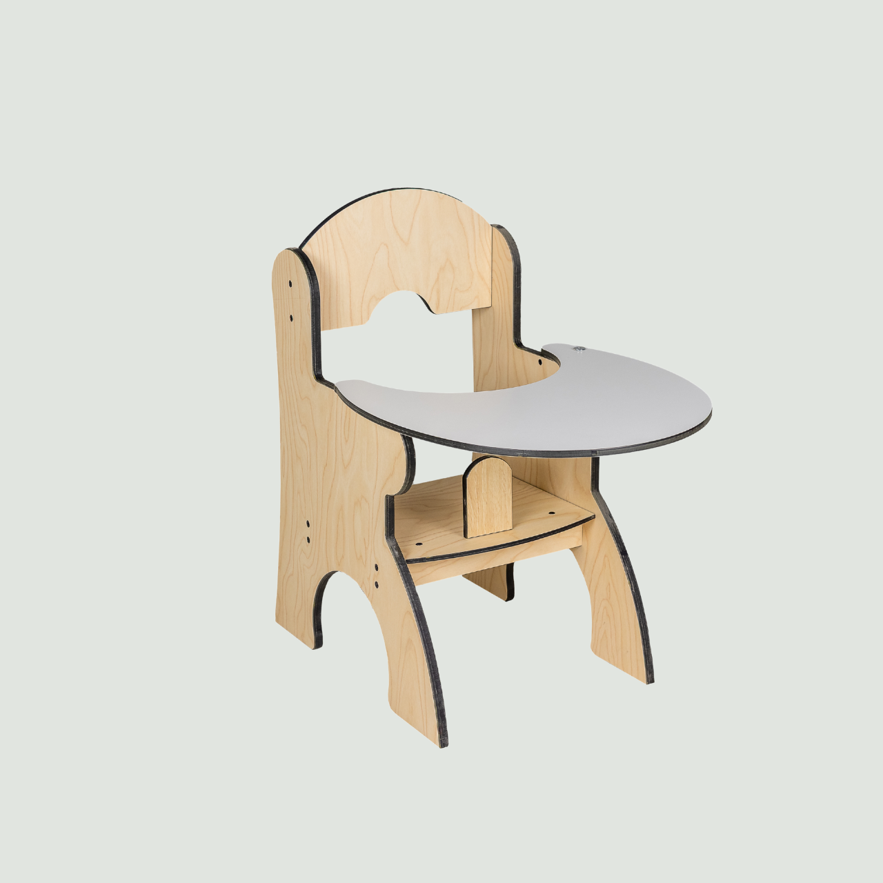 Chaise tablette en compact pensée pour les tout-petits en crèche.