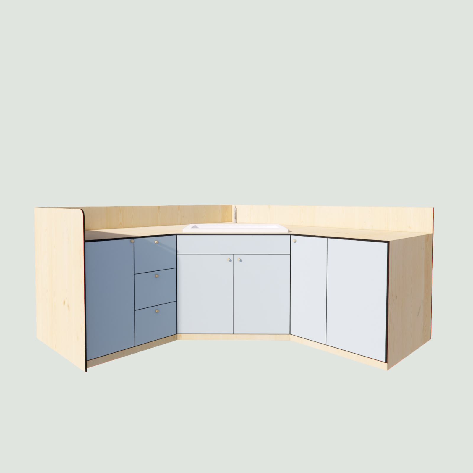 Le meuble de change double en angle possède :