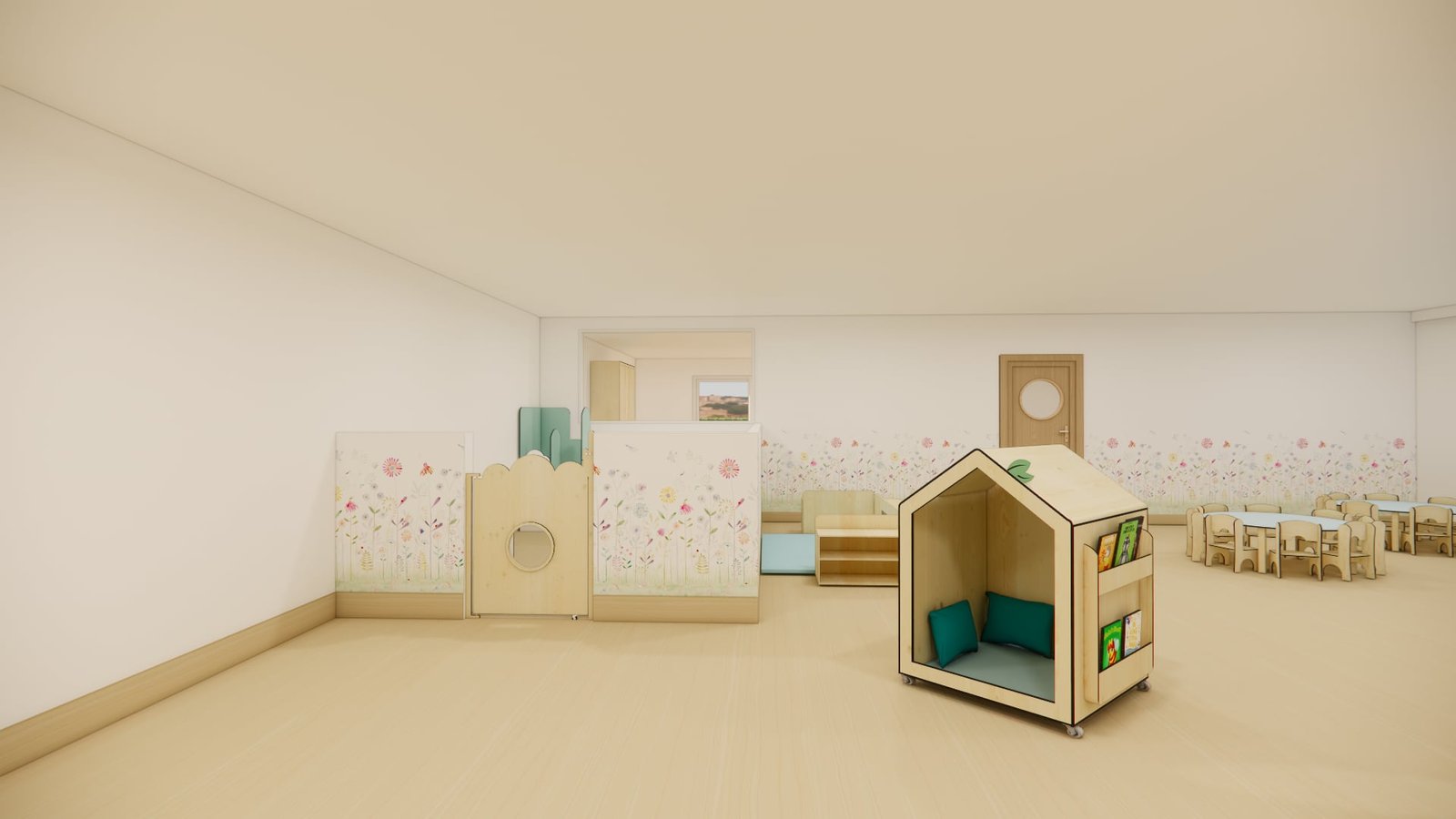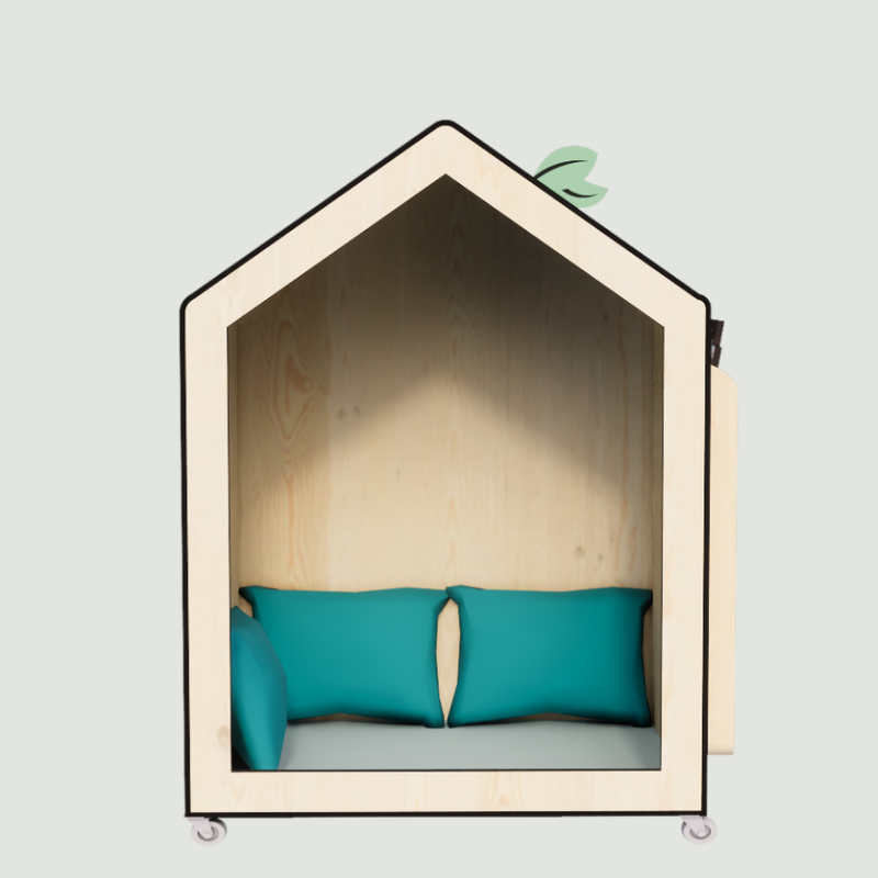 La jolie cabane mobile au design doux stimule l’imaginaire des tout-petits.