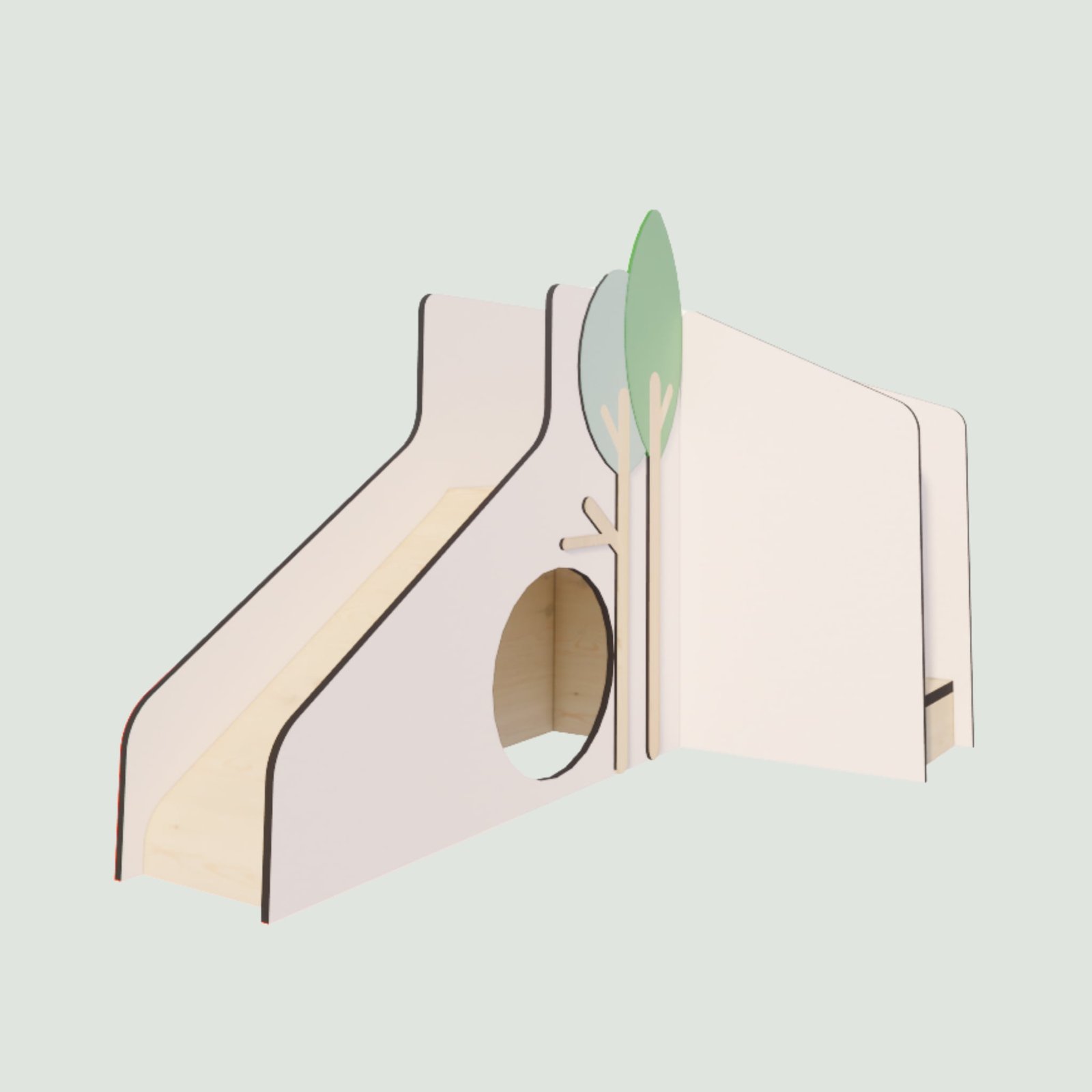 Ce toboggan d’angle optimise l’espace tout en offrant une double expérience de jeu : grimper et glisser d’un côté, ramper et se cacher de l’autre grâce au passage tunnel sous la structure. Idéal pour développer la motricité, l’équilibre dès le plus jeune âge.