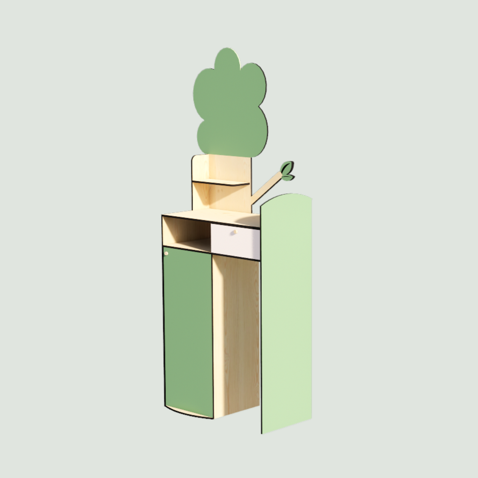 Une banque de transmission qui apporte une touche de nature et de douceur dans les espaces petite enfance grâce à son allure d’arbre .