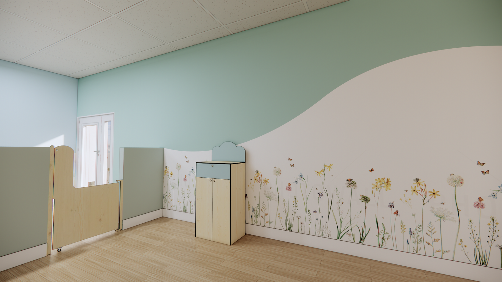 Son design nuage à l’arrière, apporte une touche de douceur aux espaces petite enfance.