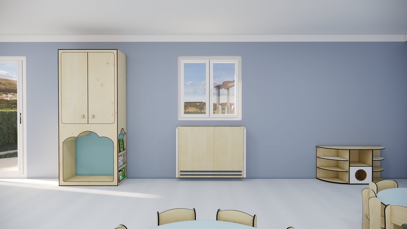 À partir de 785.00 € HTLe portillon nuage avec hublot répond aux exigences du référentiel bâtimentaire des établissements accueillant des jeunes enfants tout en apportant une touche de poésie à leurs espaces.