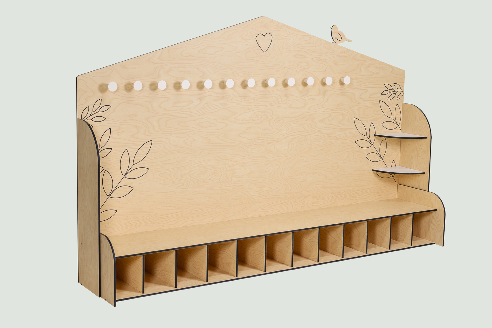 Le banc vestiaire en forme de grande maison offre un espace d’accueil attrayant pour les tout-petits .